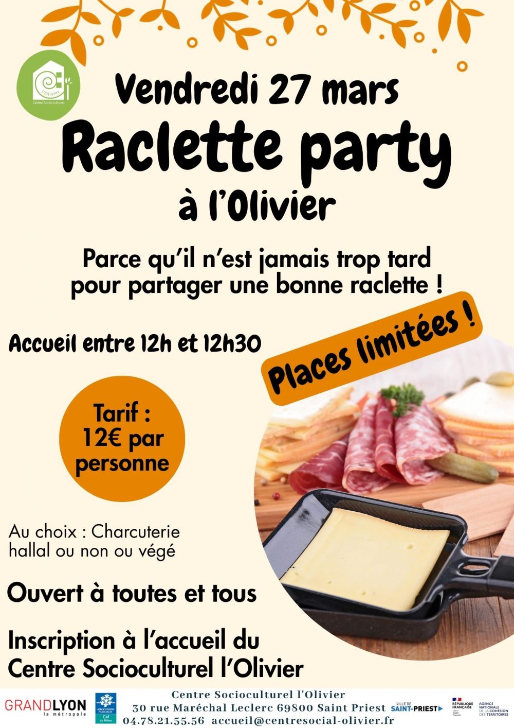 Rendez-vous vendredi 27 mars à midi pour la dernière raclette de l’année !